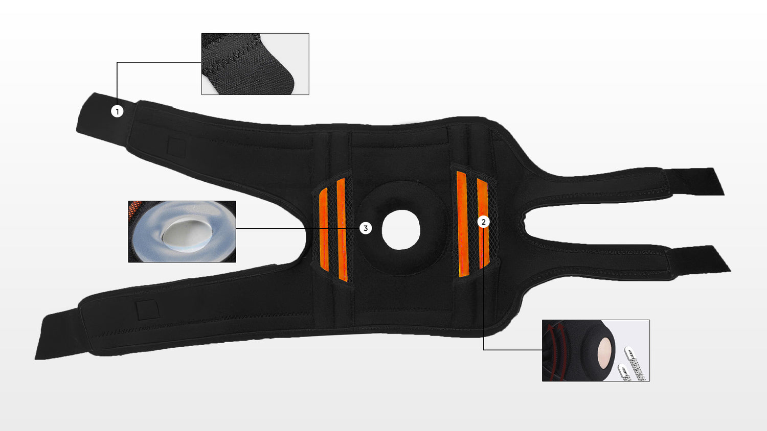 ✅ KẾT CẤU HỞ GỐI: Thiết kế mở vùng xương bánh chè giúp giảm áp lực trực tiếp lên khớp gối, hạn chế cọ xát khi vận động và tạo cảm giác thoải mái hơn khi co - duỗi gối trong thời gian dài