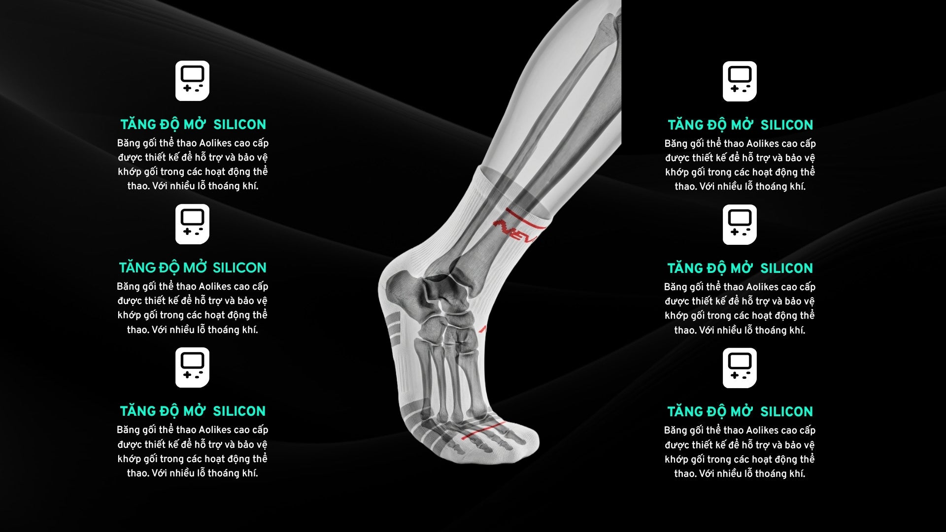 ✅ THIẾT KẾ THÔNG MINH: Trang bị dải silicone chống trượt giúp cố định bó gối, hạn chế xô lệch khi vận động. Vòng đệm silicone êm ái hỗ trợ giảm sốc khi va chạm, kết hợp khóa dính Velcro chắc chắn, dễ điều chỉnh và phù hợp nhiều form chân